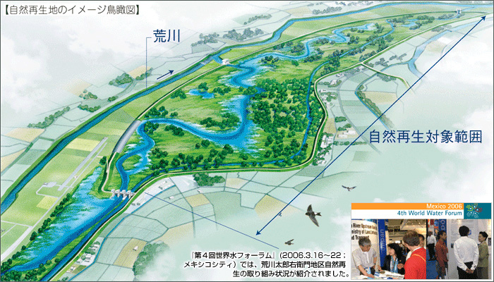 荒川太郎右衛門地区を対象に、自然環境の類型化を通じて空間特性を評価するとともに、自然再生事業の実施計画策定に向けて、段階整備計画の検討、整備内容の具体化、モニタリング計画の立案を行った。評価にあたっては、対象地をメッシュ分割し、地形情報や生物生息情報を基に定量的な分析を行った。また、実施計画の策定に向けて、自然再生協議会及びモニタリング専門部会を企画・運営した。モニタリングについては、生態系、物理環境それぞれから評価指標を定め、具体的な調査方法を立案した。以上の検討を通じて自然再生計画実施計画を作成した。